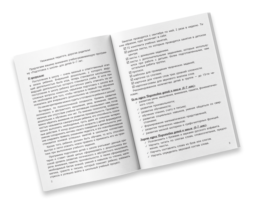 Система занятий настолько универсальна, что готовит детей к поступлению в школы, работающие по любым программам («Школа России», «Школа 2100», «Начальная школа ХХI века» и тд)